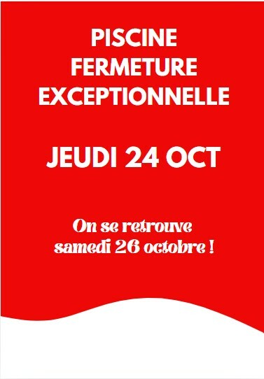 FERMETURE DE LA PISCINE JEUDI 24 OCTOBRE